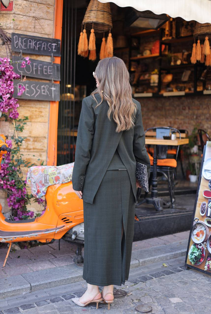 Make a lasting impression in the Marsel Blazer, Vest & Skirt Suit. This versatile suit set includes a blazer, vest, and skirt, all made with premium materials and expert craftsmanship. Stay polished and professional in any setting with this sleek and stylish suit.