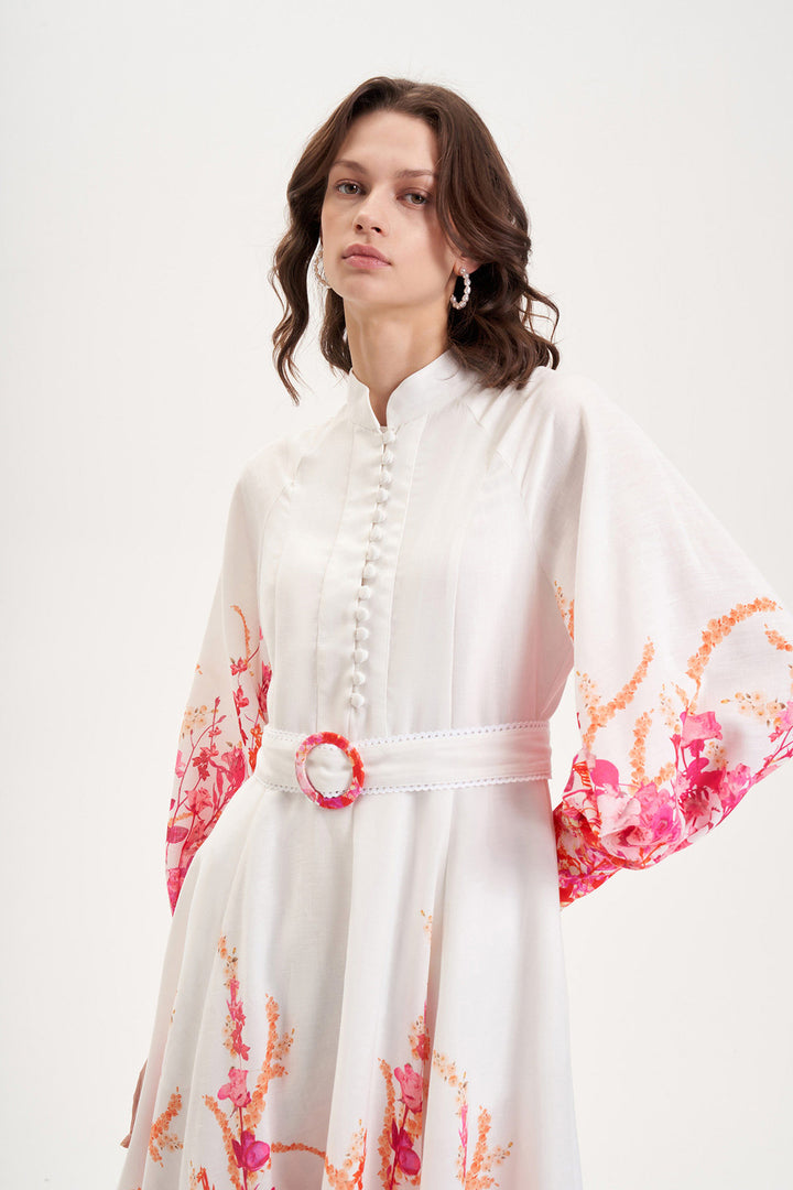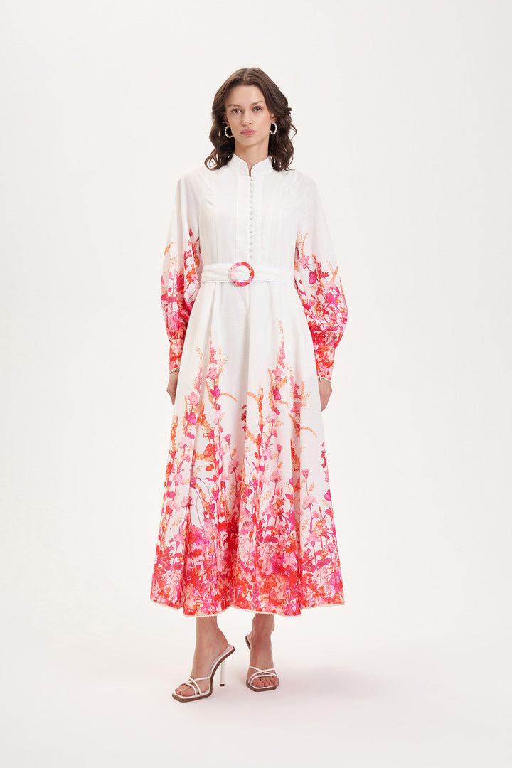 Crafted from premium linen fabric, the FLORIST LINEN DRESS offers exceptional breathability and comfort in warm weather. The thoughtfully designed silhouette flatters various body types while botanical-inspired details elevate this versatile piece. Perfect for both casual daytime events and elegant evening occasions with the right accessories.