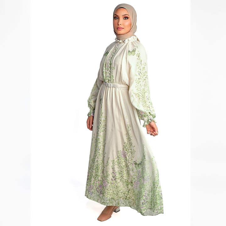 Elevate your wardrobe with our Hyacinth Patterned Half Brit Chiffon Dress. Crafted from premium chiffon fabric, this dress features an elegant hyacinth pattern that creates a sophisticated silhouette. The half Brit design offers a contemporary twist on classic styling, ensuring versatility for both formal occasions and casual outings. Lightweight and breathable, it provides exceptional comfort while maintaining a polished appearance.