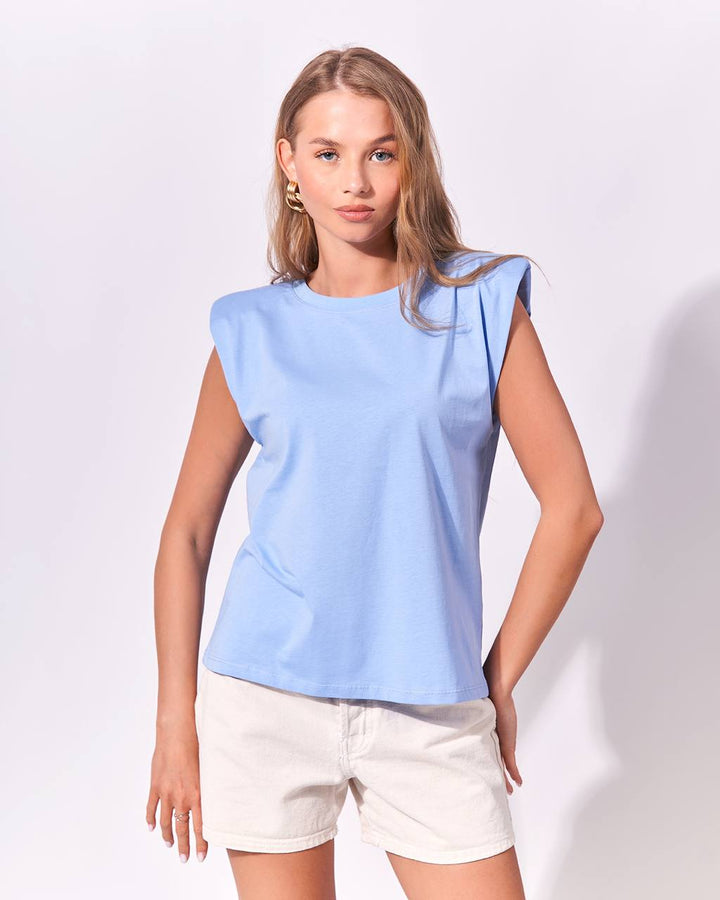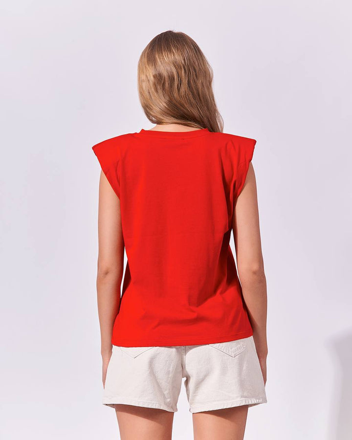 This sleeveless T-shirt offers a lightweight and breathable design, ideal for layering or warm weather wear. Crafted for comfort and ease of movement, it provides a versatile wardrobe staple suitable for both casual and active lifestyles. Its clean lines and simple silhouette ensure effortless pairing with various outfits.