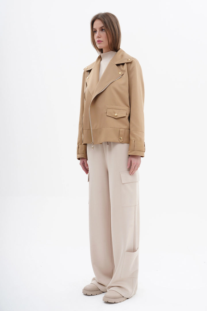 The Short Zippered Coat with Decorative Pockets offers a sleek, modern silhouette enhanced by functional design elements. Its streamlined zipper closure ensures ease of wear, while the decorative pockets add subtle visual interest without compromising practicality. This coat is expertly crafted to provide lightweight warmth and versatile style, making it a sophisticated choice for transitional seasons and urban wardrobes.
