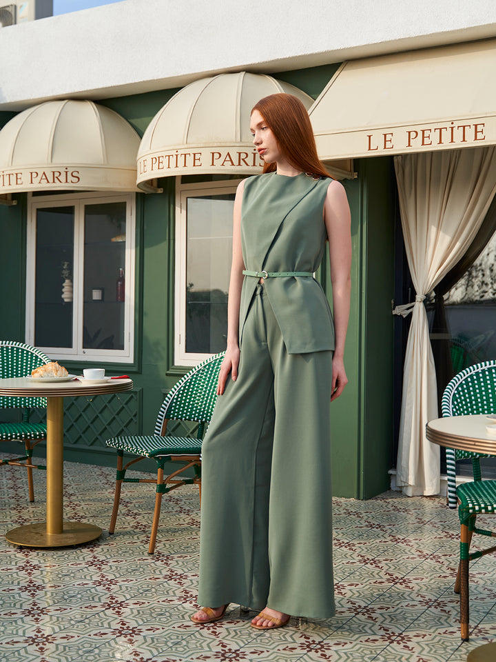 The Belt Detailed Vest Pants Set offers a polished and cohesive look with expertly tailored pieces. The vest features structured lines complemented by a belt detail that defines the waist, while the matching pants provide a streamlined silhouette for a balanced ensemble. This set combines modern sophistication with versatile styling, making it ideal for professional settings or refined occasions where a sharp, coordinated outfit is essential.